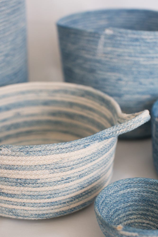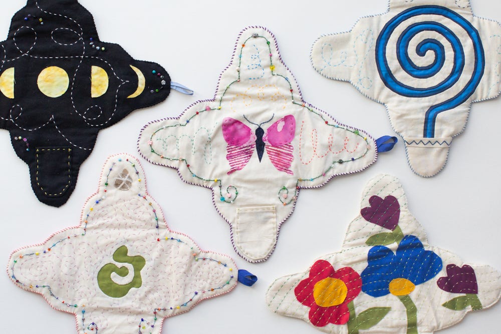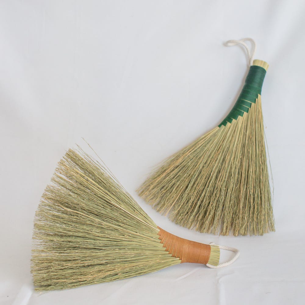 I have shipped a small box of goods (indigo baskets, brooms and some very special pocket altars pictured below) to San Francisco for the Golden Bridges School Winter Fair.